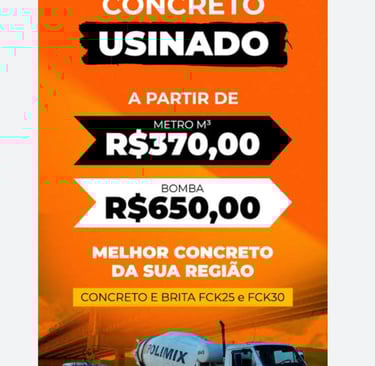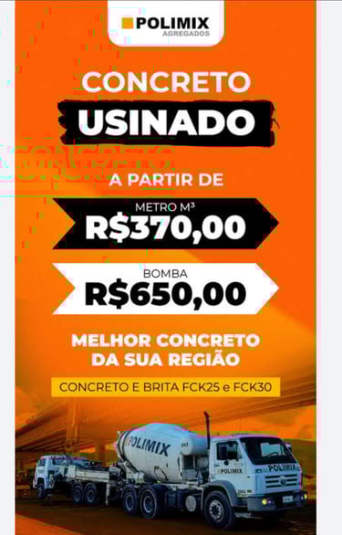 Oferecemos concreto usinado, entrega rápida e soluções práticas para sua obra, garantindo qualidade e eficiência em cada etapa.